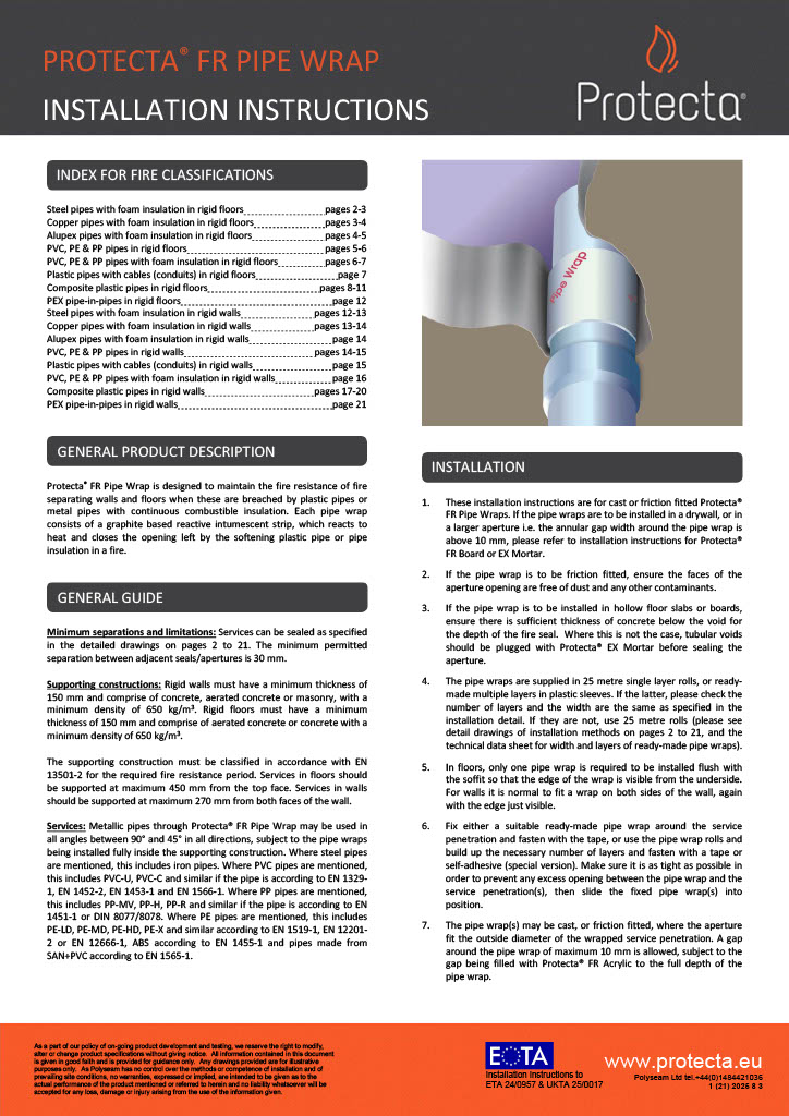 Protecta® FR Pakninger er testet og godkendt i kombination med Protecta® FR Brandplade og Protecta® EX Gipsmørtel.